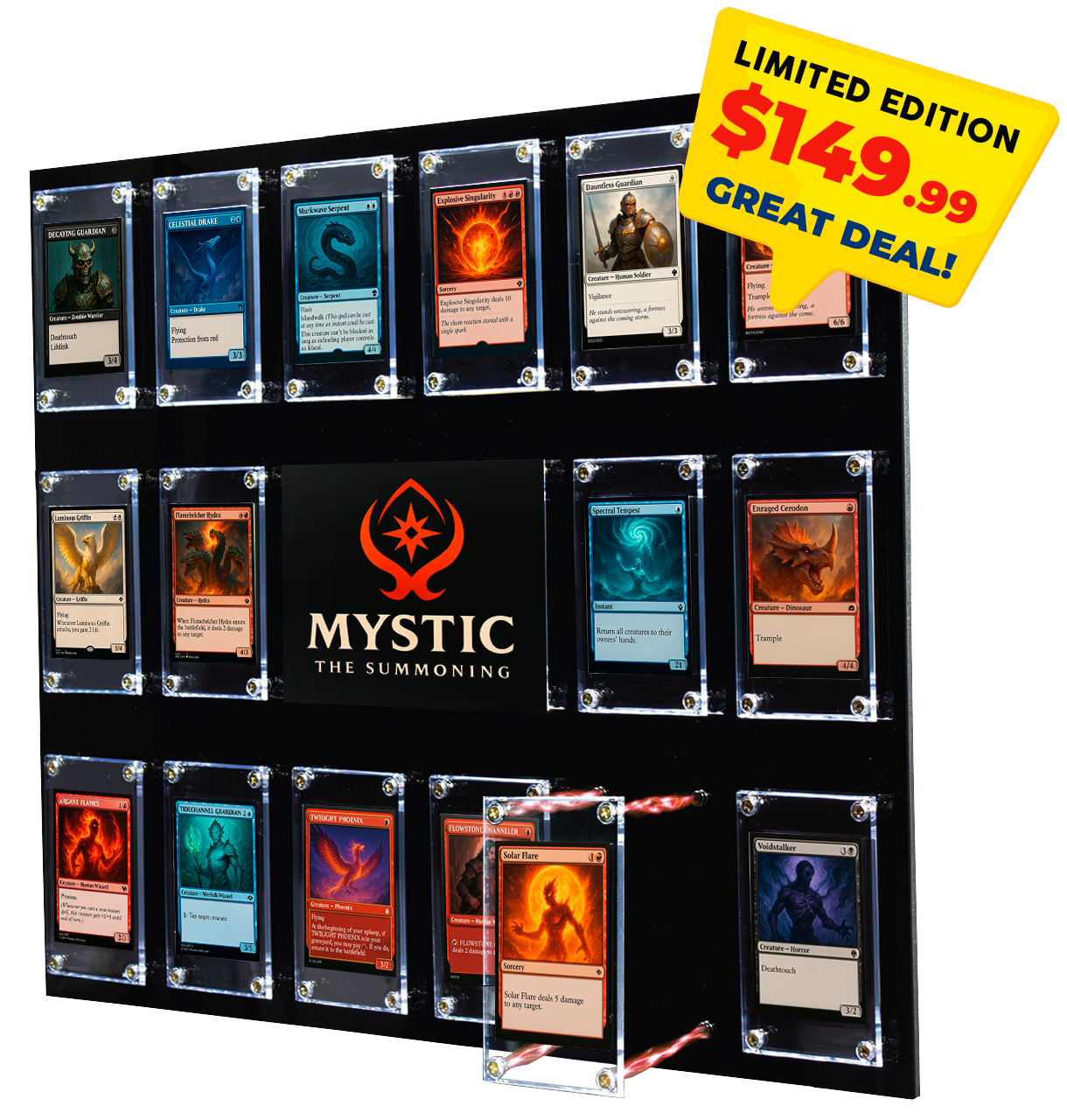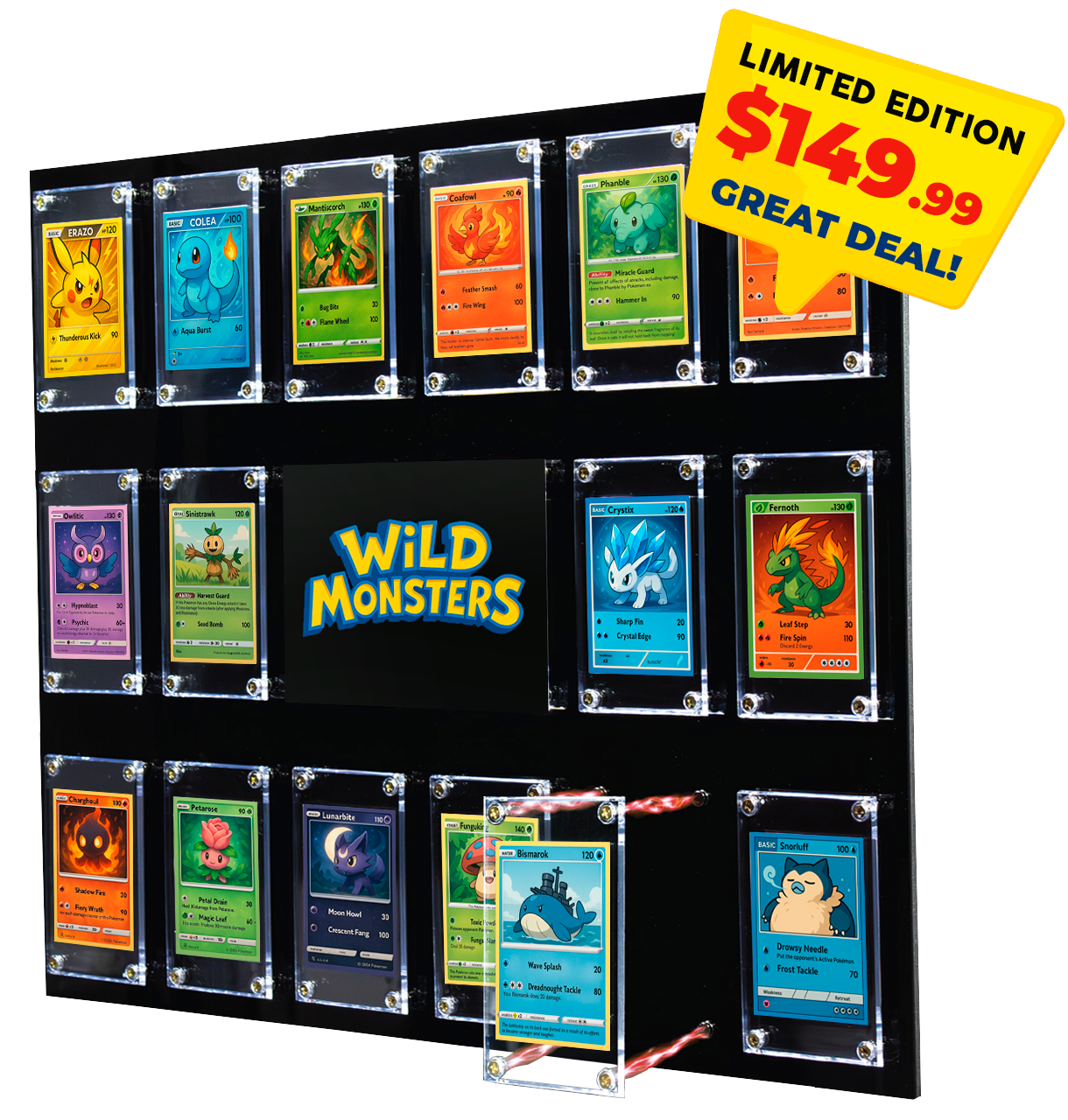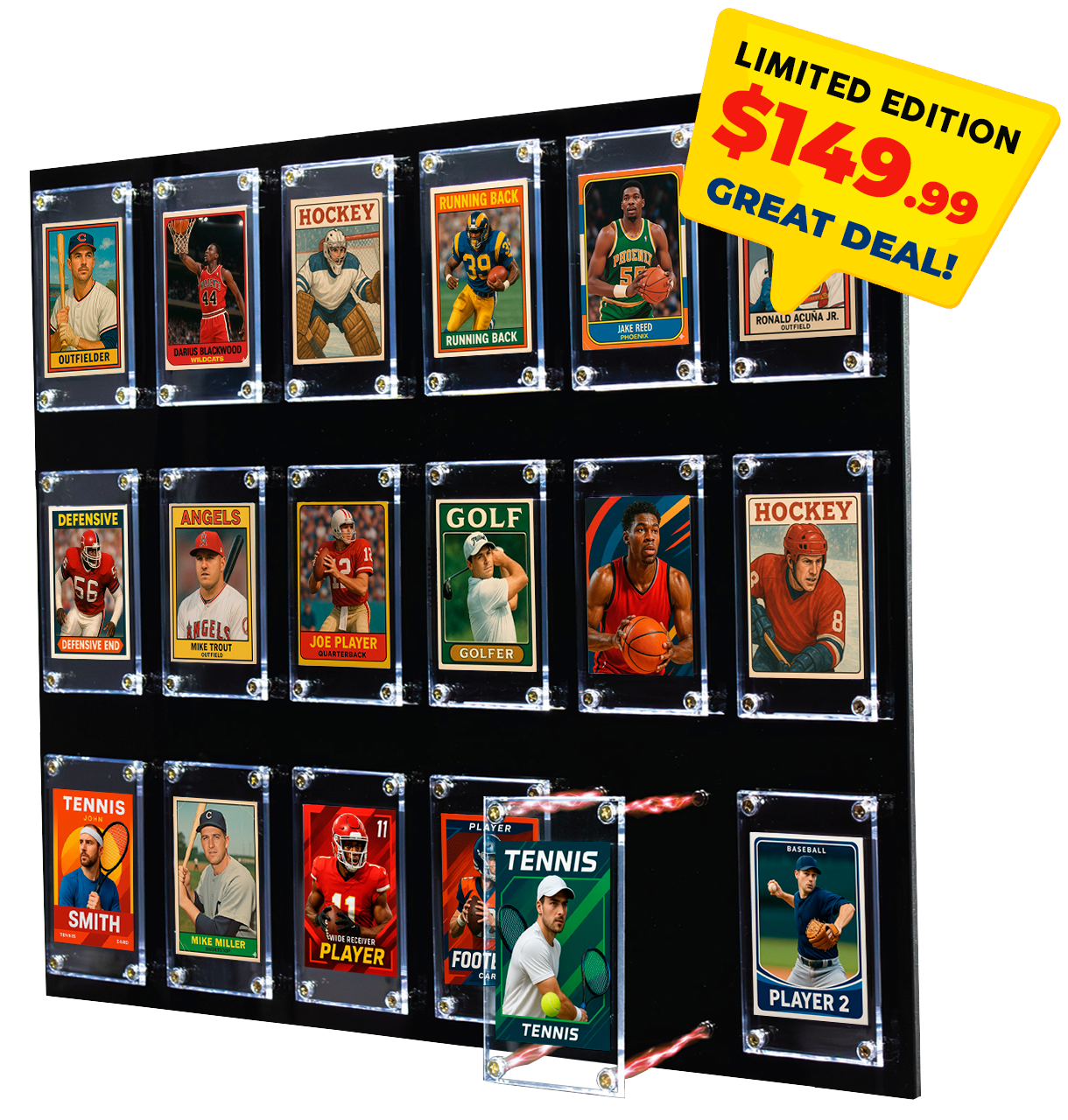 Say goodbye to bulky, outdated holders. Effortlessly swap cards in seconds while shielding them from UV damage and wear. With its modern aesthetic and premium features, the Smart Trading Card Display™ transforms your prized collection into a captivating centerpiece of admiration and a true work of art.